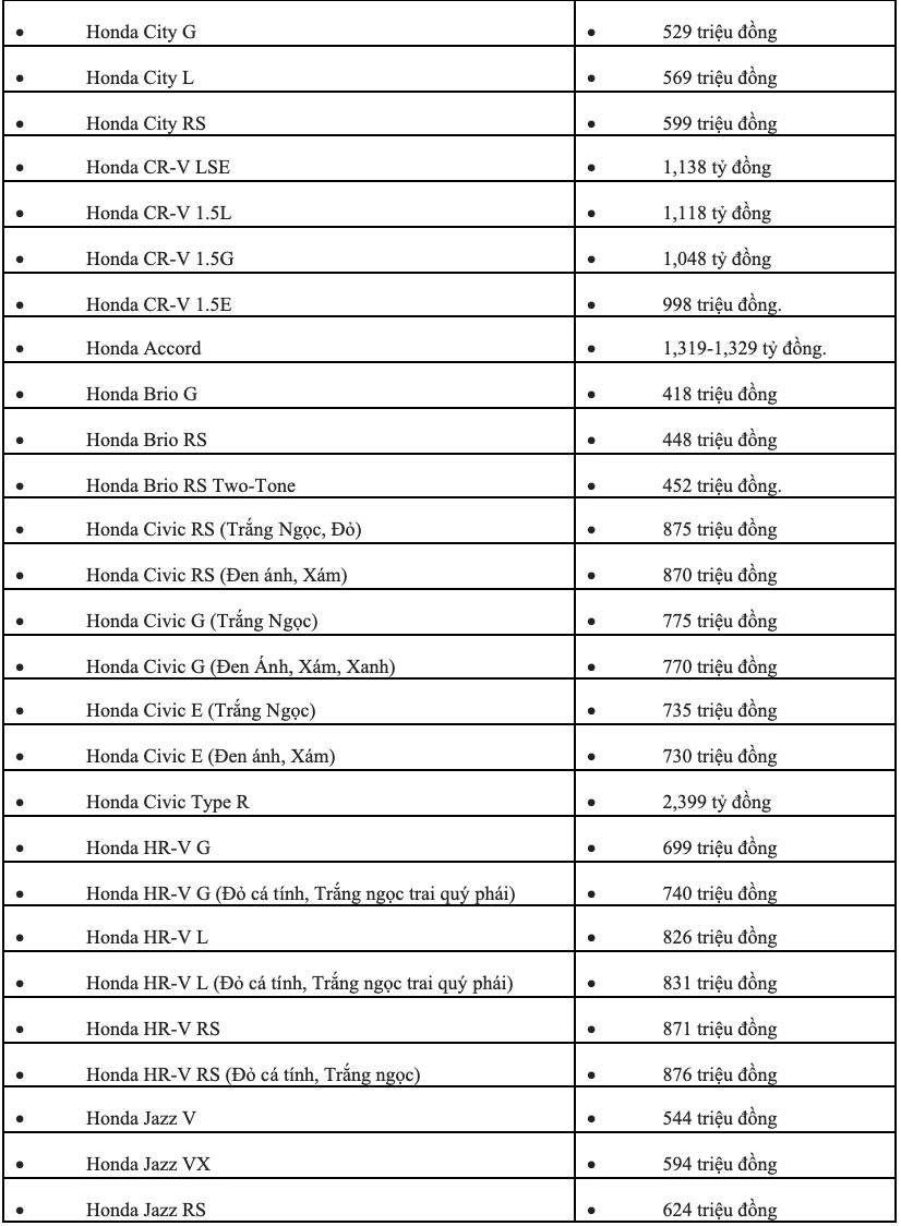 Như vậy, với ưu đãi này, khách hàng mua Honda CR-V sẽ tiết kiệm được số tiền tương đương từ 99,8 – 136,6 triệu đồng. Tương tự đối với Honda City là từ 52,9 – 71,9 triệu đồng.