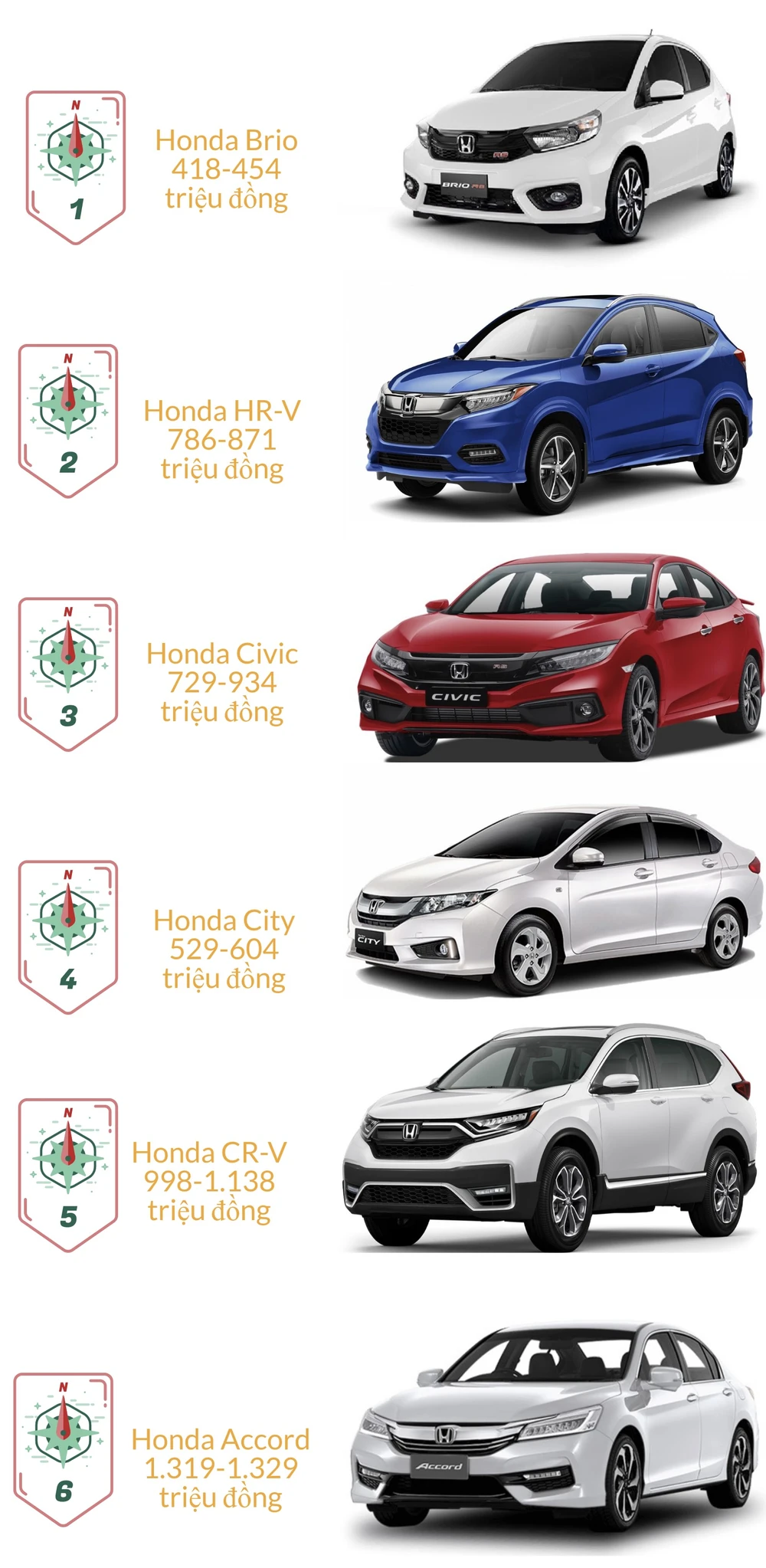 Mẫu Honda Civic cũng đang được bán ra với giá dao động từ 720-925 triệu đồng (giá niêm yết là 729-929 triệu đồng).