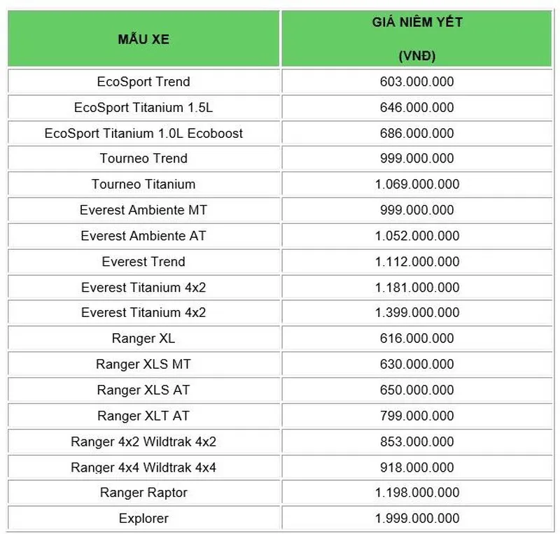 Riêng mẫu xe Ford Everest được ưu đãi từ 20-75 triệu đồng. Trong đó, phiên bản Everest Trend 2.0L AT 4x2 được hỗ trợ một phần phí trước bạ, tổng giá trị khuyến mãi 50 triệu đồng.