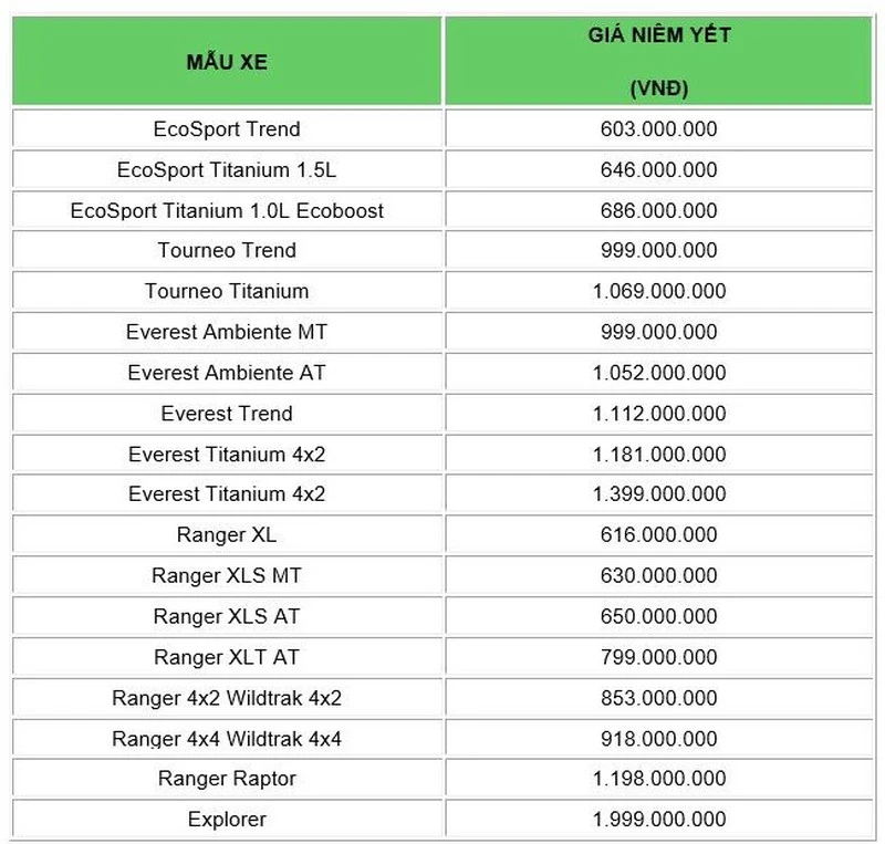 Tương tự như vậy một số phiên bản của Ford Ranger và Transit cũng được ưu đãi 20 triệu đồng.