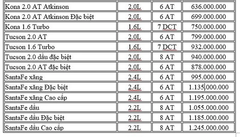 Trong đó, giá xe Hyundai cũng bị ảnh hưởng cho khách hàng mua xe. Tuy nhiên, giá xe tháng 1-2021 vẫn giữ mức ổn định từ năm 2020.