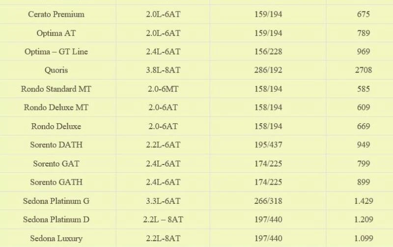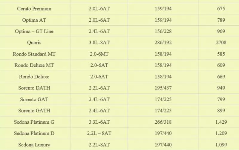 Bảng giá xe Kia tháng 4 không có nhiều biến đổi, tuy nhiên điểm đáng chú ý nhất là mẫu xe ăn khách Kia Morning hiện có giá từ 299-393 triệu đồng. Nhiều mẫu xe của hãng như Sorento, Sedona đều đang được ưu đãi trong tháng 4.