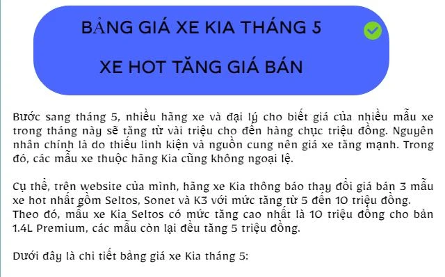(PLO)- Bảng giá xe tháng 5 với nhiều mẫu xe Kia tăng giá bán từ 5 triệu đồng đến 10 triệu đồng.