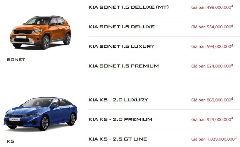 Bảng giá xe Kia tháng 5: Tăng giá đến 10 triệu đồng cho mẫu xe hot