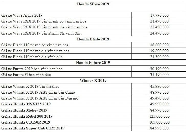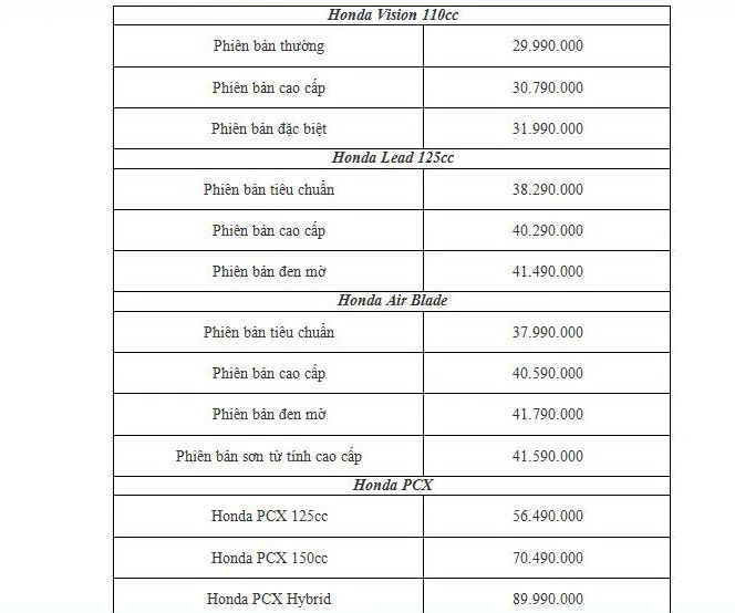 Trong đó, một số mẫu xe Honda giảm giá nhẹ như Honda Winner X, Honda Vision, Honda Lead.
