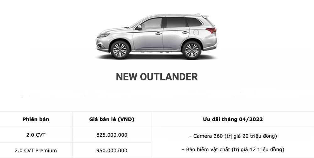 (PLO)- Giá xe Mitsubishi tháng 4 với mức ưu đãi lên đến 41 triệu đồng.