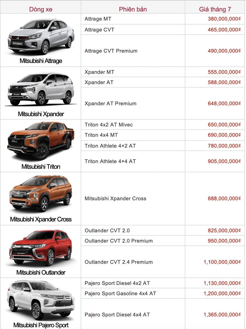Bảng giá xe Mitsubishi tháng 7: Attrage chỉ từ 380 triệu đồng