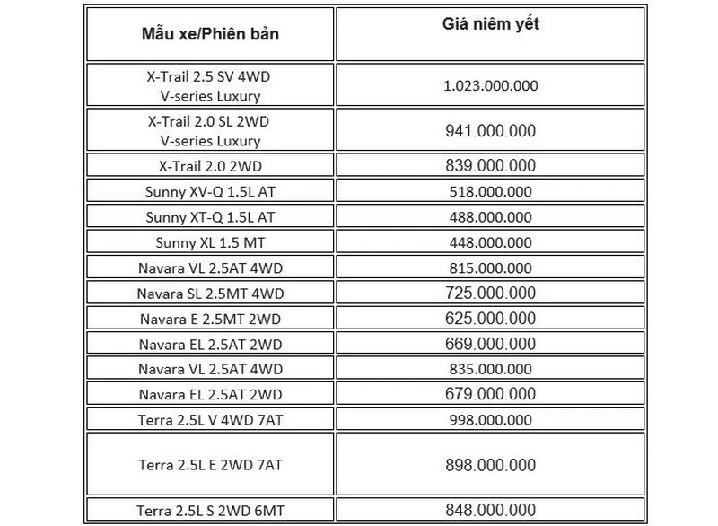 Bảng giá xe Nissan tháng 10 vẫn không có nhiều thay đổi so với các tháng trước đó.