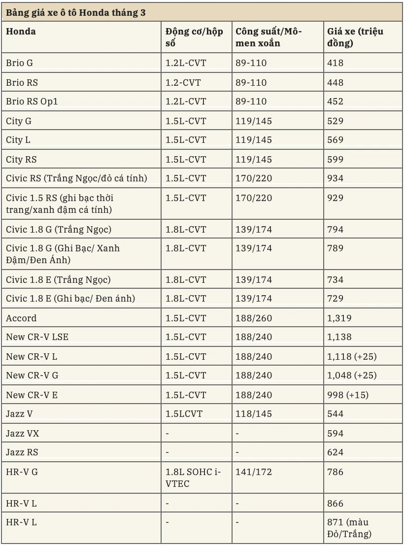 Bước sang tháng 3, bảng giá xe ô tô Honda vẫn giữ mức ổn định giống như các tháng trước đó. Đáng chú ý, trong tháng 3 này mẫu xe mới ra mắt của Honda là Civic 2022 cũng chính thức lên kệ và bán ra tại Việt Nam.