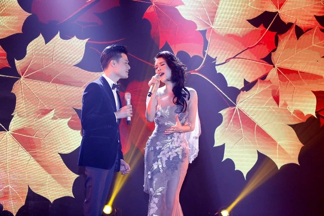 Ca sĩ Thu Phương và Quang Dũng trên sân khấu. Ảnh BTC
