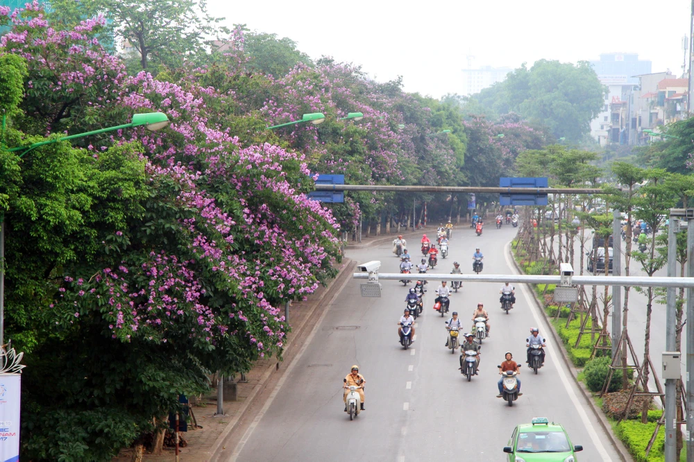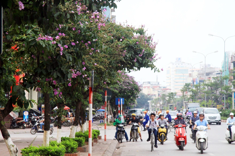 Trên nhiều tuyến phố Hà Nội đang nhuộm tím bởi sắc màu mộng mơ của hoa bằng lăng.