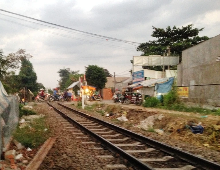 Khu vực xảy ra vụ tai nạn đường dân sinh giao với đường sắt nhưng không có rào chắn và đèn tín hiệu. Ảnh: TIẾN DŨNG