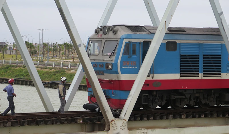 Nạn nhân bị hất văng ra, còn chiếc xe máy bị đoàn tàu kéo lê hơn 100 m lên cầu đường sắt Đà Rằng.