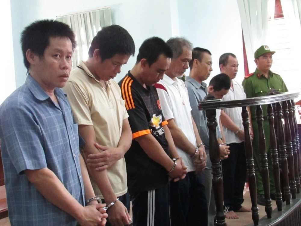 Bảy bị cáo trong băng trộm miền Tây nghe tòa tuyên án trưa 10-7. Ảnh: NN