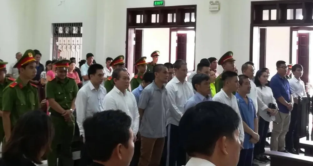 Các bị cáo đứng nghe tòa tuyên án ngày 2-10. Ảnh: MV