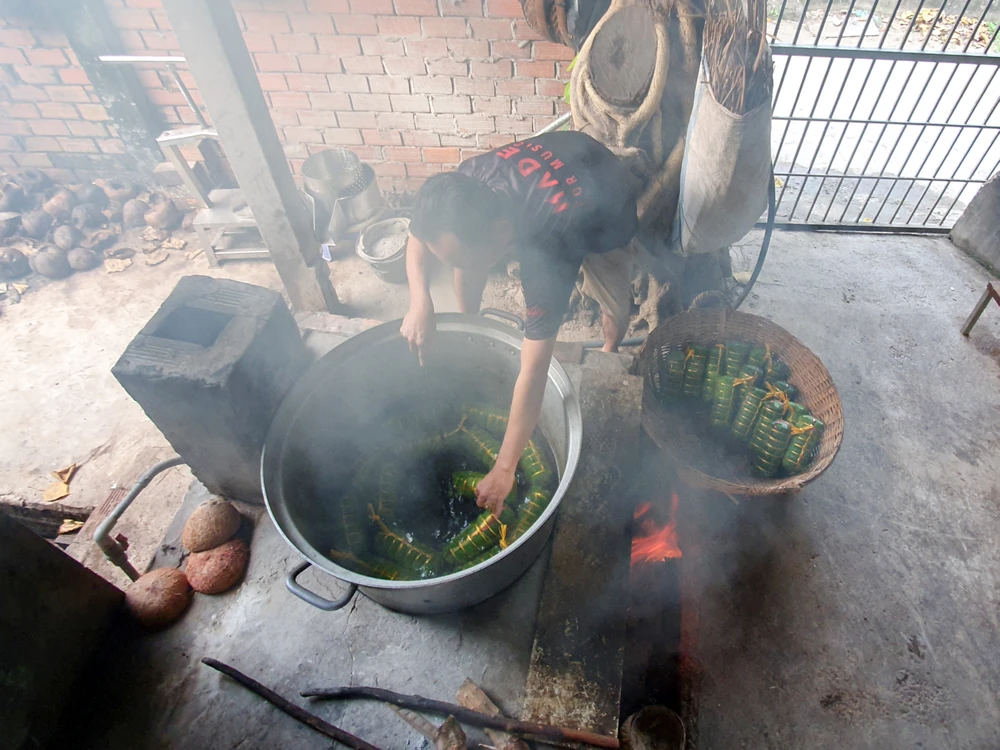 Những ngày giáp Tết Nguyên đán Nhâm Dần 2022, các cơ sở sản xuất bánh tét lá cẩm ở quận Bình Thủy, TP Cần Thơ vẫn đỏ lửa hàng ngày để cho ra lò các mẻ bánh thơm ngon đã khẳng định bánh tét lá cẩm là món ăn mang phong vị ngày tết không thể thiếu với người dân miền Tây.