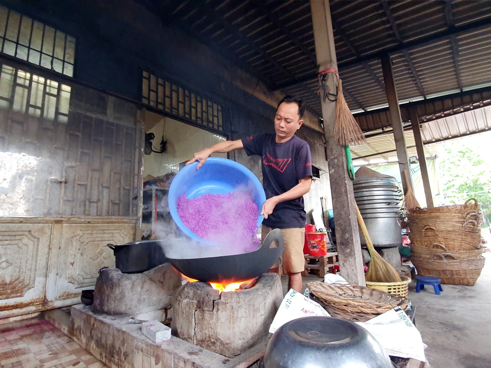 Chị Lê Thị Thanh Thủy, một người làm bánh tét lá cẩm hai đời ở quận Bình Thủy, TP Cần Thơ chia sẻ để bánh tét lá cẩm ngon, bắt mắt và hợp vệ sinh, người làm bánh phải trải qua một quy trình nghiêm ngặt từ chọn nguyên liệu đến chế biến và gói.
