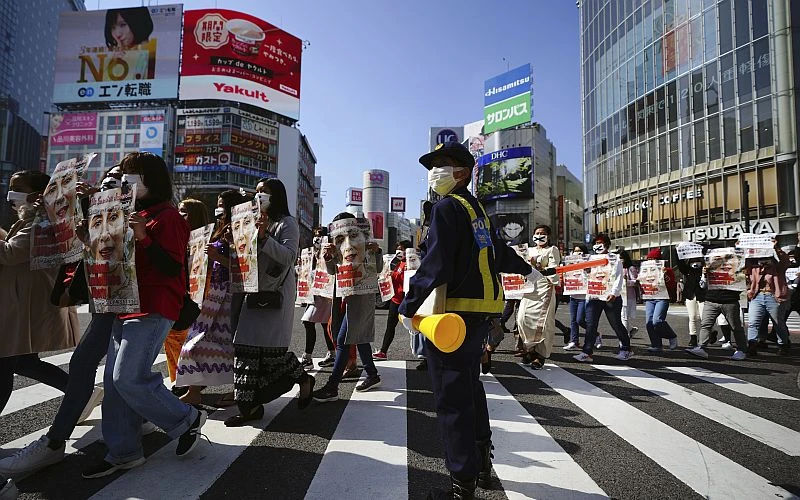 Người Myanmar tại Nhật biểu tình phản đối chính biến ở quê hương. Ảnh: AP