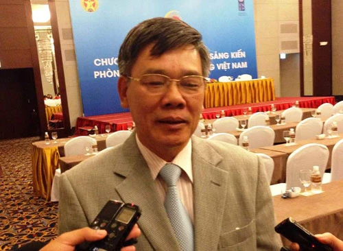 Ông Trần Đức Lượng trao đổi với báo chí bên hành lang Chương trình nhân rộng sáng kiến phòng, chống tham nhũng Việt Nam. Ảnh: Đ. TRUNG