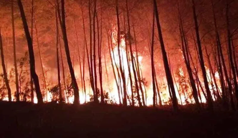 Rừng thông ở huyện Diễn Châu (Nghệ An) cháy dữ dội. Ảnh: PC.