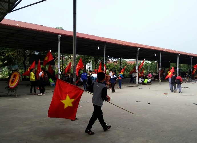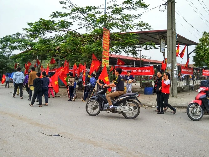 Học sinh trường cấp I, II trên địa bàn xã Ninh Hiệp bỏ học để cùng phản đối dự án