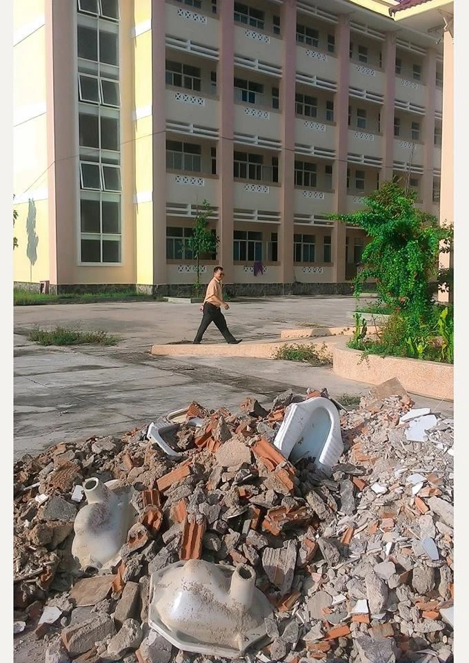 BV YHCT đã phải bỏ hàng trăm triệu đồng ra ký hợp đồng thuê nhân công phá bỏ toàn bộ hệ thống bàn cầu xổm.