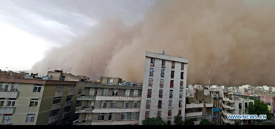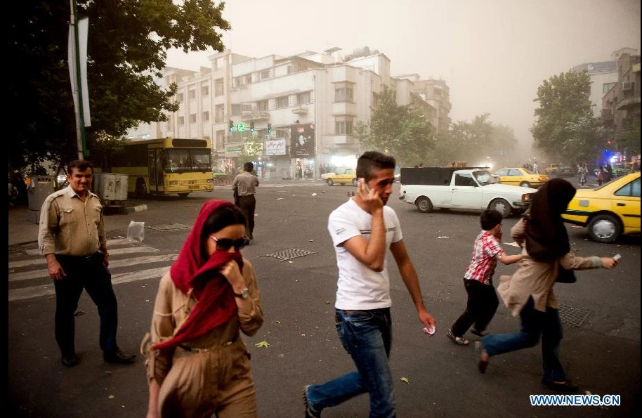 Theo hãng tin Xinhua, nhiều nhân chứng cho biết cơn bão với gió mạnh kèm cát, thổi thốc qua thành phố, khiến đường phố tung bụi mù mịt, bầu trời tối sầm. Nhìn từ xa cũng có thể thấy rõ bức tường cát cao hàng trăm mét, di chuyển với tốc độ lớn đang lấn tới, bao phủ bầu trời Tehran.
