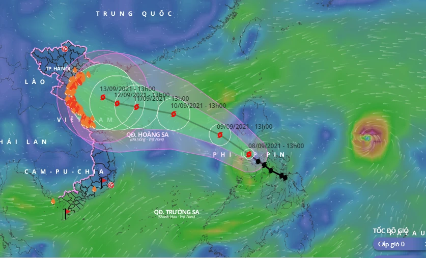 Dự báo đêm nay (8-9), sau khi đi qua Philippines, bão Conson sẽ đi vào Biển Đông trở thành cơn bão số 5 năm 2021. Bão Conson có hướng di chuyển chủ yếu theo hướng tây tây bắc, tốc độ di chuyển trung bình 20 km, ảnh hưởng trực tiếp, gây sóng to, gió lớn cho khu vực quần đảo Hoàng Sa trong ngày 10-9.