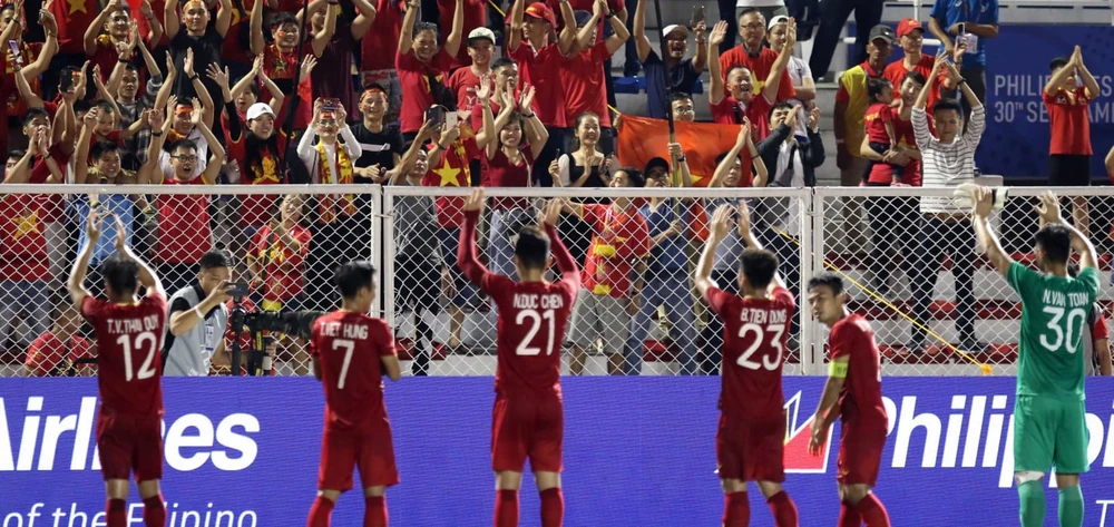 Cầu thủ Việt Nam cám ơn khán giả sau mỗi trận đấu. Ảnh: A.PHƯƠNG