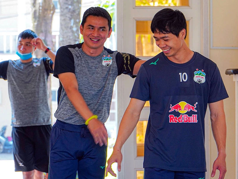 HLV Kiatisak và tiền đạo Công Phượng trở lại tập luyện, chuẩn bị V-League bóng lăn lại vào ngày 13-3. Ảnh: CTV