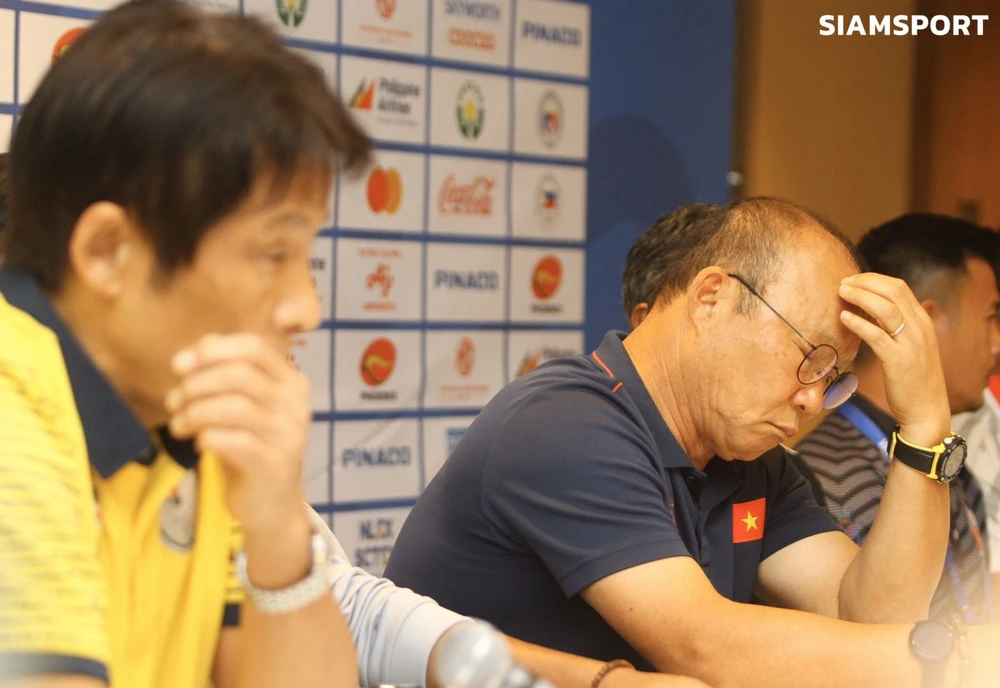 Khi bước vào bàn, HLV Park Hang-seo thấy chỉ còn thiếu HLV Nishino. Ông liền rời ghế bước xuống bàn phía dưới pha một cốc cà phê nóng mang lên bàn họp báo vừa nhấm nháp vừa nghe các HLV trả lời báo chí, vừa trả lời báo chí.