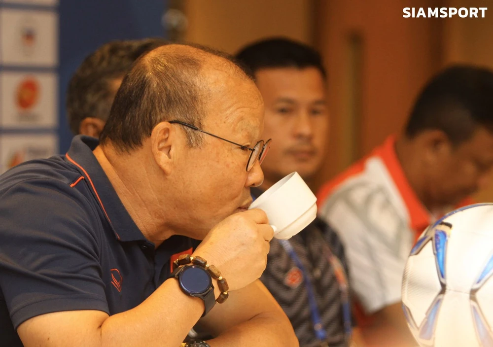 Hình ảnh HLV Park Hang-seo nhấm nháp cà phê được tờ Siam Sport của Thái Lan ghi lại.