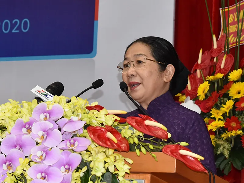 Phó Bí thư Thành ủy TP.HCM Võ Thị Dung phát biểu tại buổi lễ. Ảnh: TÁ LÂM
