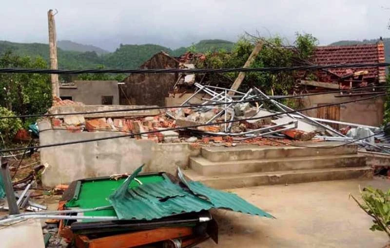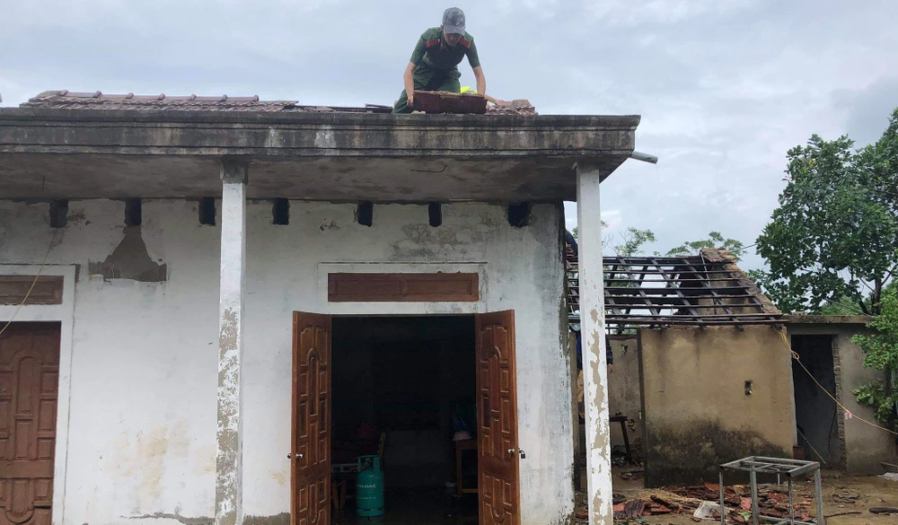 Gió lốc làm mái tôn hư hỏng, mái ngói bị sập.
