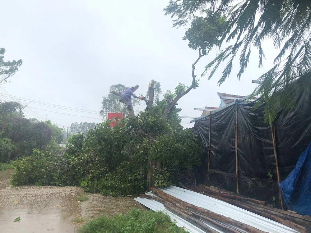 Người dân chủ động chặt cây ứng phó với bão số 6. Ảnh: THANH NHẬT