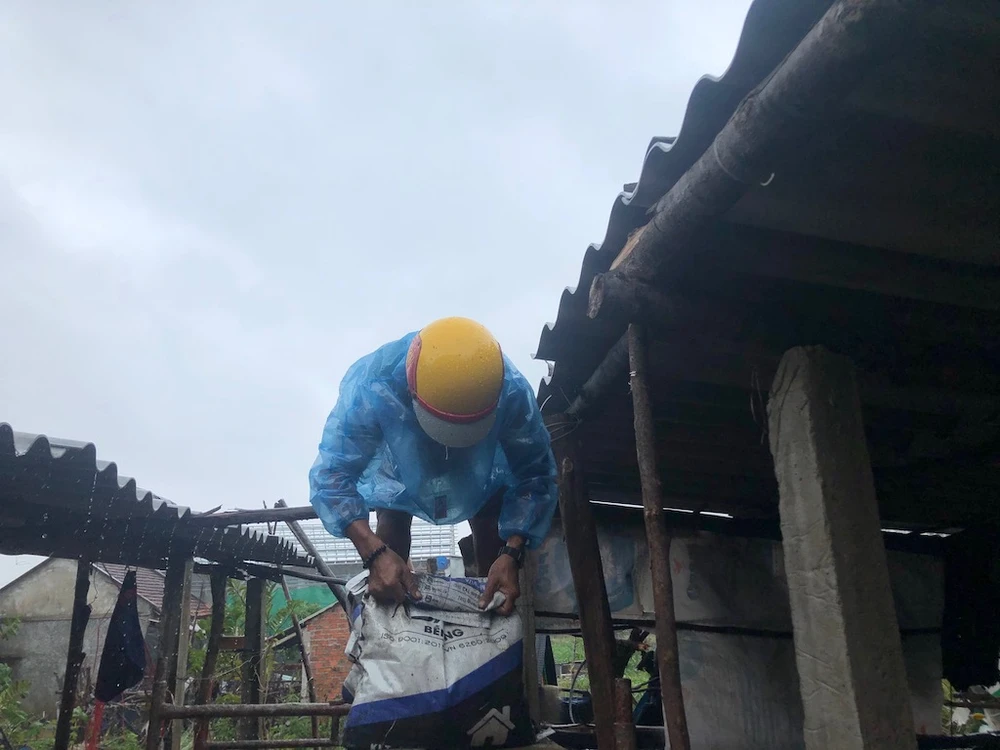 Sau cơn bão số 5, nhà bà Phùng Thị Năm (46 tuổi, ngụ cùng địa chỉ) bị tốc mái hoàn toàn đến nay vẫn chưa được sửa chữa. Theo hàng xóm, bà đã chuẩn bị lợp ngói trở lại nhưng do sợ bão số 6 nên vẫn chưa dám. Từ hôm qua, bà Năm đã đến bệnh viện tránh bão và lo cho người chồng bị thương nặng trong cơn bão số 5.