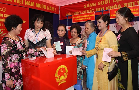 Cử tri Hà Nội bỏ phiếu bầu đại biểu Quốc hội khóa XIII và đại biểu Hội đồng nhân dân các cấp nhiệm kỳ 2011 – 2016. Ảnh: TTXVN