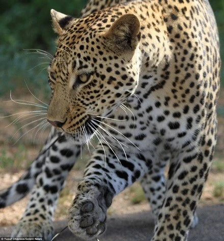 Con báo cố gắng ăn thịt miếng mồi của mình. (Nguồn: Daily Mail)