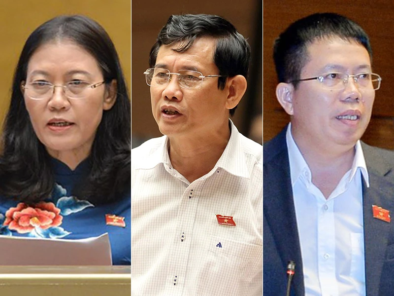 Chủ nhiệm Ủy ban Tư pháp QH Lê Thị Nga, Phó Trưởng đoàn giám sát (trái). Đại biểu Nguyễn Ngọc Phương (Quảng Bình – giữa) . Đại biểu Nguyễn Văn Hiển (Lâm Đồng – phải). Ảnh: QUỐC HỘI