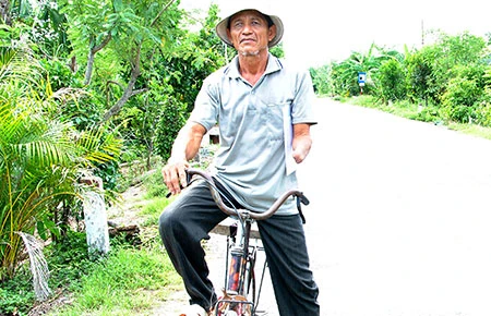 Ông Hoàng với chiếc xe đạp vất vả nhiều năm trời để yêu cầu cơ quan chức năng cho hưởng tiền trợ cấp mai táng. Ảnh: NGUYỄN HIỀN