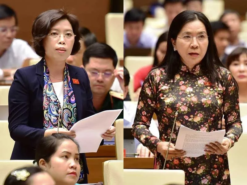 Bà Đào Tú Hoa (trái) và bà Trịnh Ngọc Thúy phát biểu. Ảnh: ML
