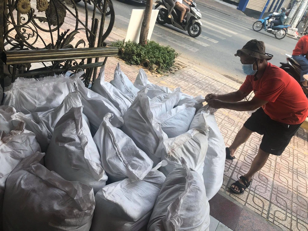Những bao gạo nhỏ chứa đựng nghĩa tình lớn của anh chị em VFS gửi đến nhiều hoàn cảnh gặp khốn khó trong mùa dịch COVID. Ảnh: ANH TIẾN