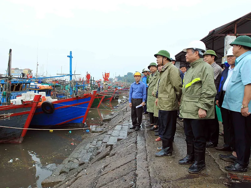 Bộ trưởng Bộ Nông nghiệp và Phát triển nông thôn Nguyễn Xuân Cường kiểm tra công tác phòng, chống bão số 4 tại TP Hải Phòng. Ảnh: TTXVN