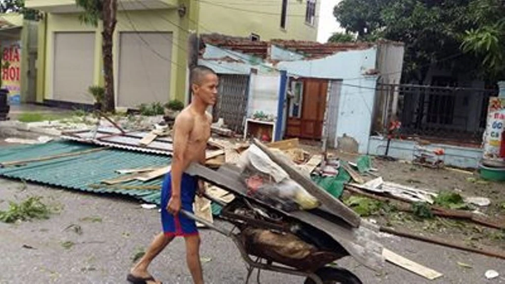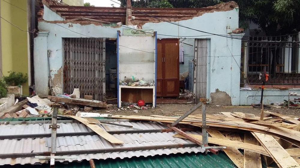 Một kiốt ở phường Hưng Dũng (TP Vinh, Nghệ An) bị bão số 2 quật tốc mái, hư hỏng. Ảnh: ĐẮC LAM