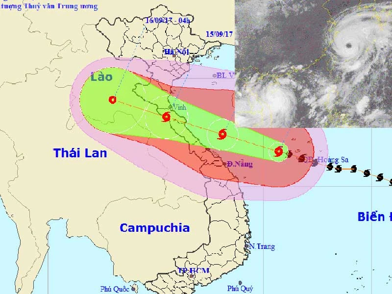Đến chiều và đêm nay (15-9), bão sẽ đi vào đất liền các tỉnh từ Nghệ An đến Quảng Trị gây gió mạnh cấp 11-12, giật cấp 15, sau đó suy yếu dần trên đất liền ở biên giới Việt-Lào. Sức gió mạnh nhất ở vùng gần tâm bão mạnh cấp 10 (90-100 km/giờ), giật cấp 13.