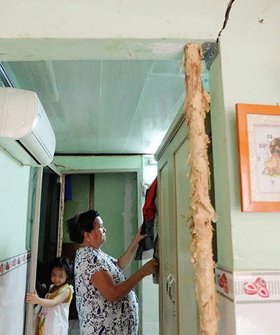 Căn nhà chị Lê Thị Thùy Dương, 275/9 Đặng Nguyên Cẩn, phường 14, quận 6 đã hư hỏng nghiêm trọng. Ảnh: V.HOA