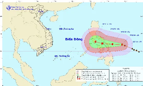 Vị trí và hướng đi của bão Hagupit (Ảnh: Trung tâm Dự báo Khí tượng Thủy văn trung ương).