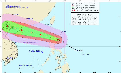 Dự báo ngày mai 15-9, bão di chuyển theo hướng tây tây bắc, mỗi giờ đi được khoảng 20 - 25km và còn có khả năng mạnh thêm. Như vậy đêm nay 14-9, vùng tâm bão sẽ đi vào vùng biển phía đông khu vực bắc Biển Đông. Đến 13 giờ ngày mai 15-9, vị trí tâm bão cách quần đảo Hoàng Sa khoảng 640km về phía đông đông bắc. Sức gió mạnh nhất ở vùng gần tâm bão mạnh cấp 13, tức là từ 134 đến 149 km một giờ, giật cấp 16.