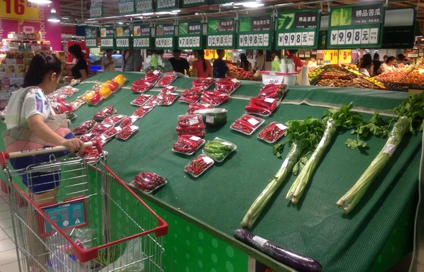 Hàng hóa trong một siêu thị tại Hải Khẩu, tỉnh Hải Nam, Trung Quốc gần như trống rỗng vào ngày 15/9 vừa qua, sau khi người dân tích cực mua sắm để chuẩn bị đón bão Kalmaegi. (Nguồn: zimbio.com)