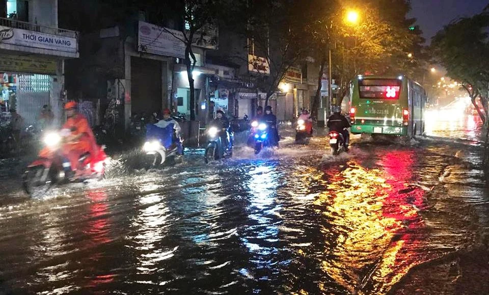 Trao đổi với PV Pháp Luật TP.HCM, một lãnh đạo Công ty Thoát nước đô thị TP.HCM cho biết nguyên nhân ngập là do triều cường.